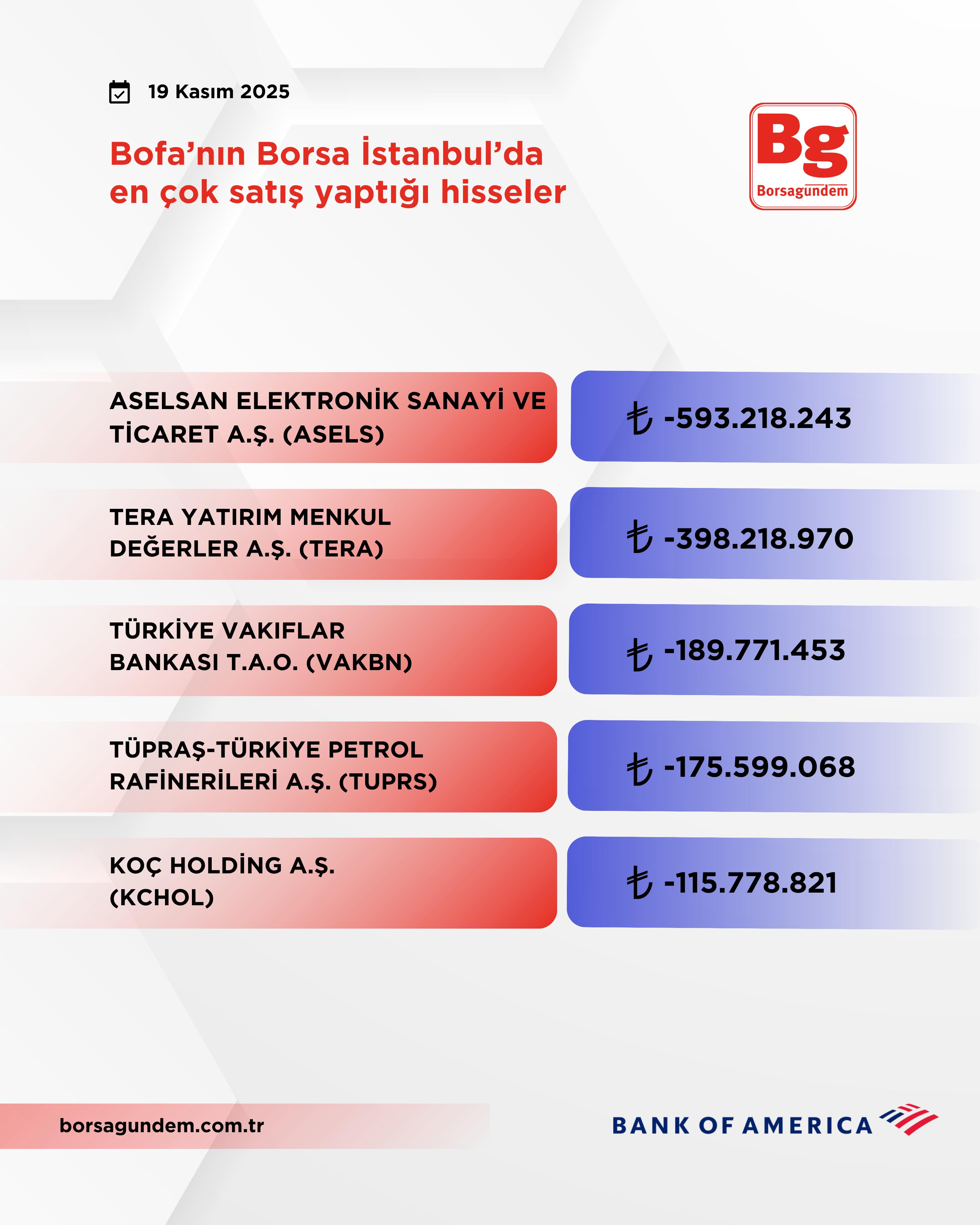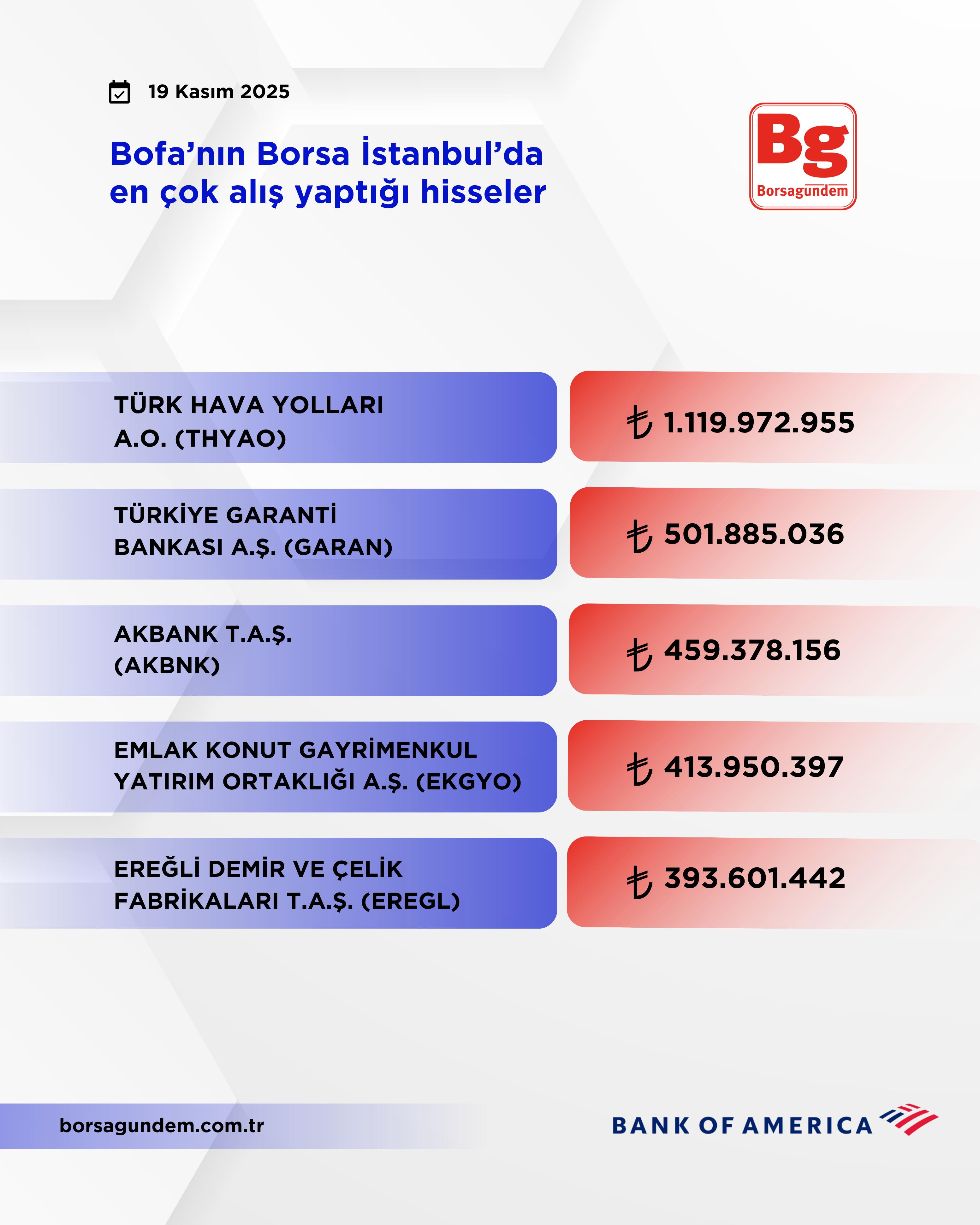 Bank of America'nın bugün Borsa İstanbul’da en çok alım satım yaptığı hisseler