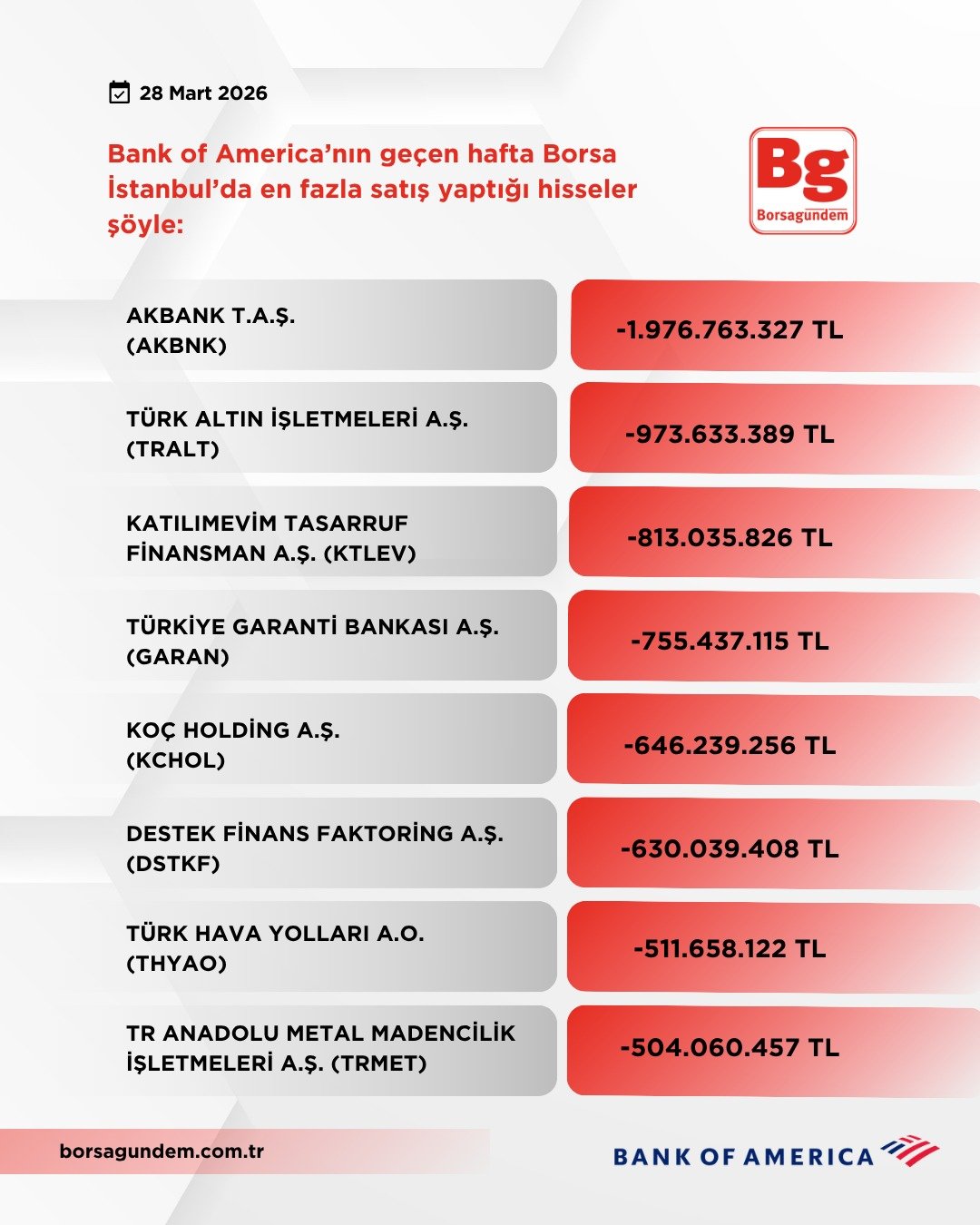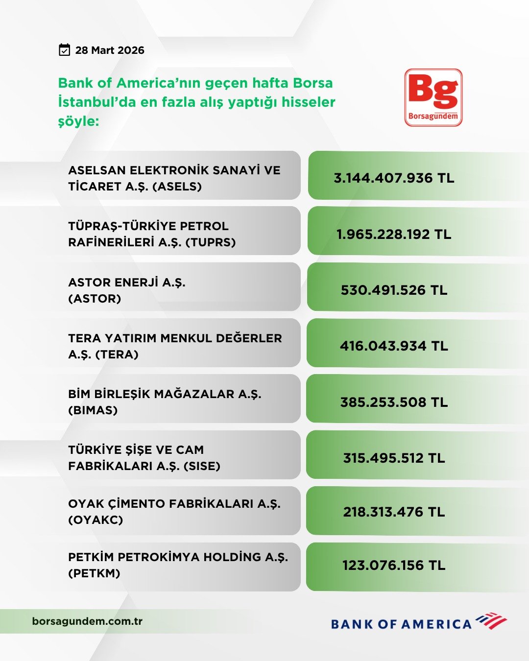 İşte; BofA'nın geçen hafta Borsa İstanbul'da en çok alım-satım yaptığı hisseler...