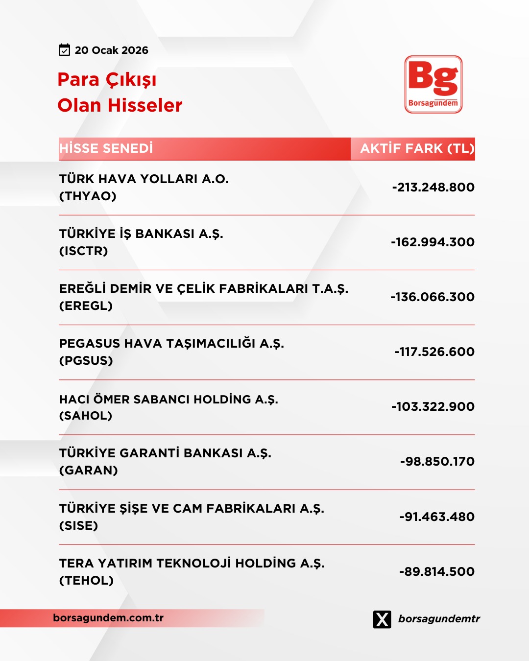 Borsada para girişi ve çıkışının yoğun olduğu hisseler