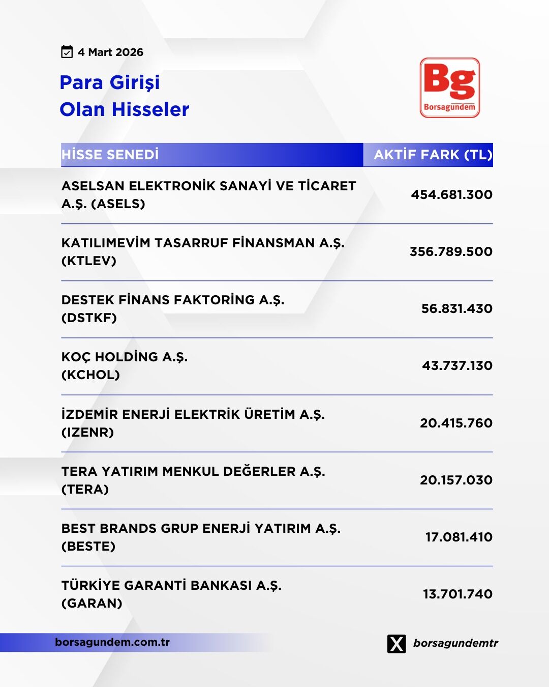 Borsa İstanbul Pay Alım-Satım Haberleri (4 Mart)
