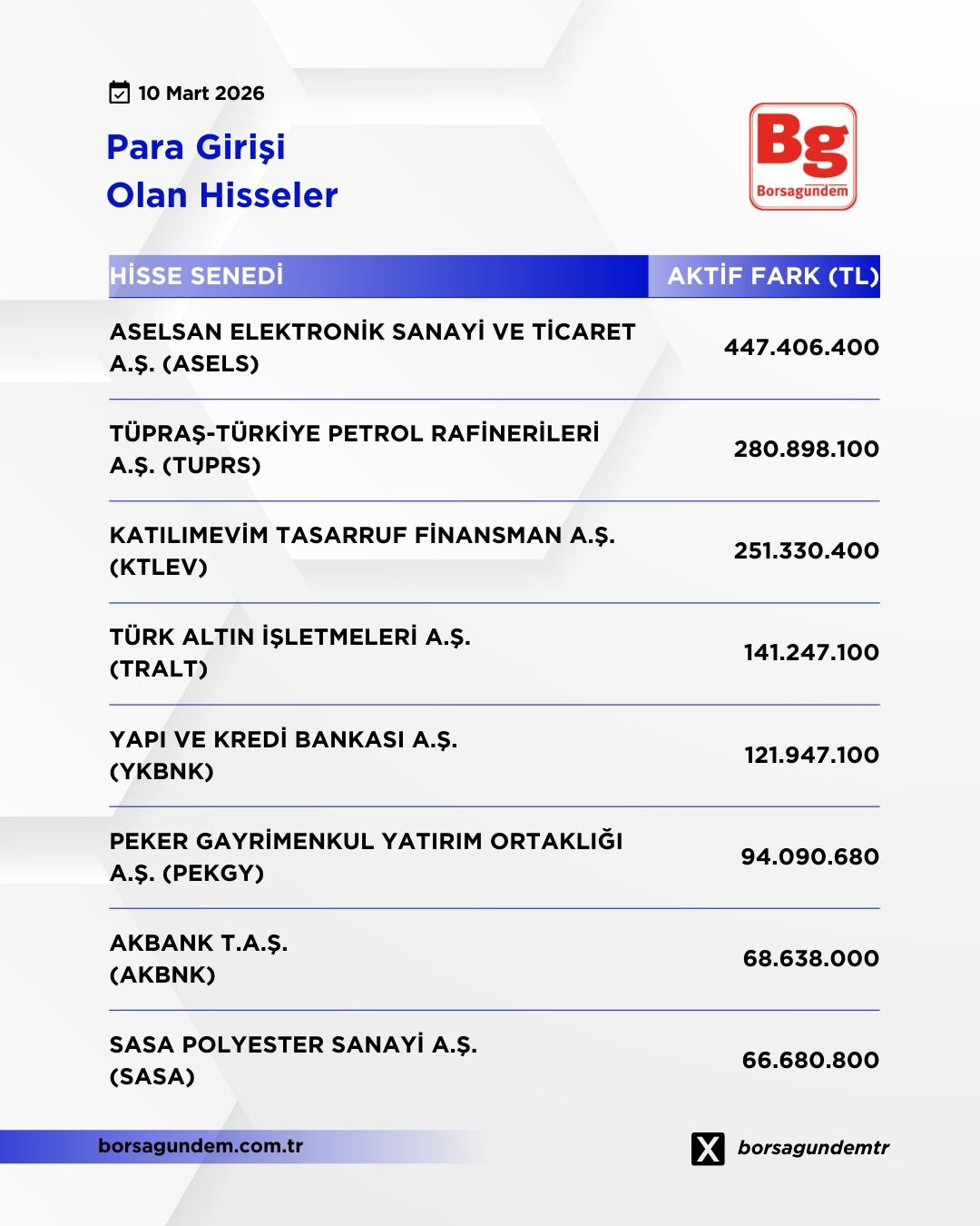 Borsa İstanbul Pay Alım-Satım Haberleri (10 Mart)