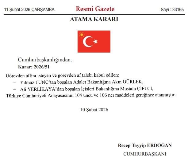 Adalet Bakanı olan Yılmaz Tunç’un yerine ise İstanbul Cumhuriyet Başsavcısı Akın Gürlek atandı.