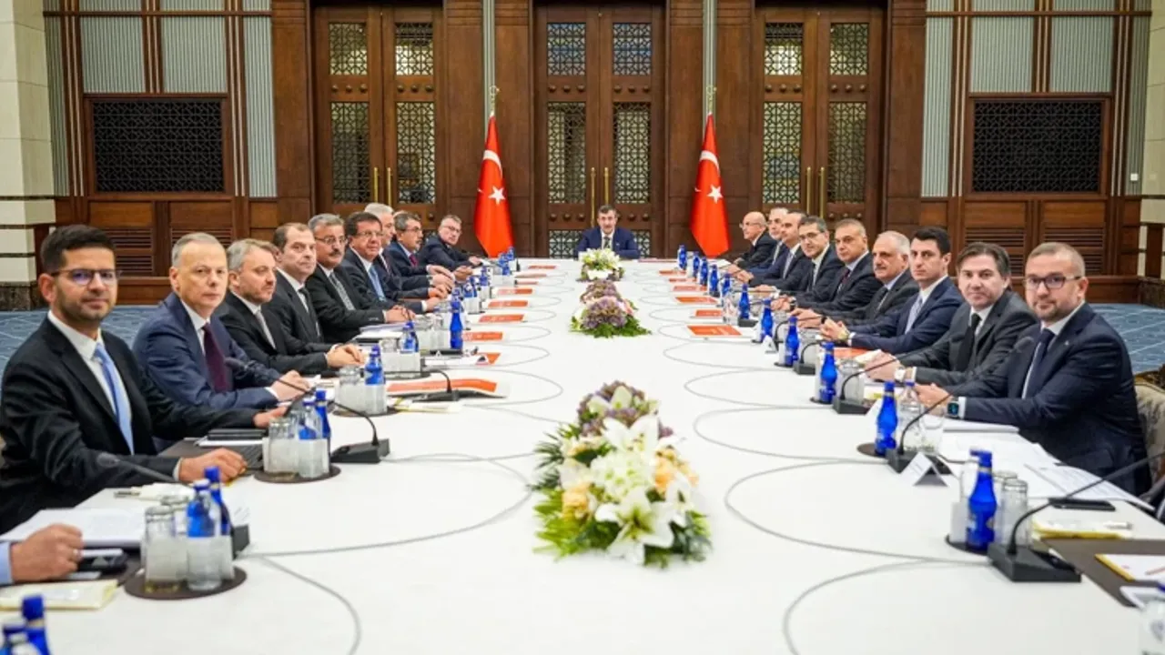 Cumhurbaşkanlığı Külliyesi'ndeki toplantıya, Hazine ve Maliye Bakanı Mehmet Şimşek, Çalışma ve Sosyal Güvenlik Bakanı Vedat Işıkhan, Sanayi ve Teknoloji Bakanı Mehmet Fatih Kacır, Ticaret Bakanı Ömer Bolat, AK Parti Grup Başkanı Abdullah Güler, AK Parti Genel Başkanvekili Efkan Ala, AK Parti Genel Başkan Yardımcısı Nihat Zeybekci??, Cumhurbaşkanlığı Strateji ve Bütçe Başkanı İbrahim Şenel, Türkiye Cumhuriyet Merkez Bankası (TCMB) Başkanı Fatih Karahan, Cumhurbaşkanlığı Yatırım ve Finans Ofisi Başkanı Ahmet Burak Dağlıoğlu, Çevre, Şehircilik ve İklim Değişikliği Bakanlığı İklim Değişikliği Başkanı Halil Hasar ve bazı bakan yardımcıları ile ilgili kurum ve kuruluşların temsilcileri katıldı.