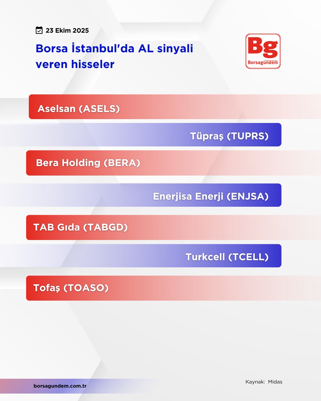 Listede, BIST 100 endeksinde bulunan, fiyatı 9, 21, 50 ve 200 günlük üssel hareketli ortalamasının üstünde olan, MACD’si 0’ın üstünde, RSI göstergesi 70’in altında Stokastik ve Stokastik RSI göstergesi 80’in altında olan hisseler yer almaktadır.