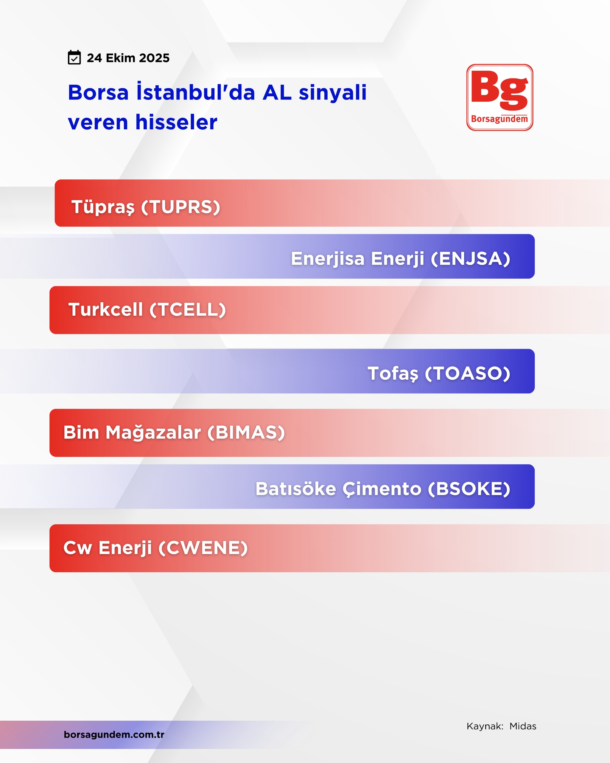 Listede, BIST 100 endeksinde bulunan, fiyatı 9, 21, 50 ve 200 günlük üssel hareketli ortalamasının üstünde olan, MACD’si 0’ın üstünde, RSI göstergesi 70’in altında Stokastik ve Stokastik RSI göstergesi 80’in altında olan hisseler yer almaktadır.
