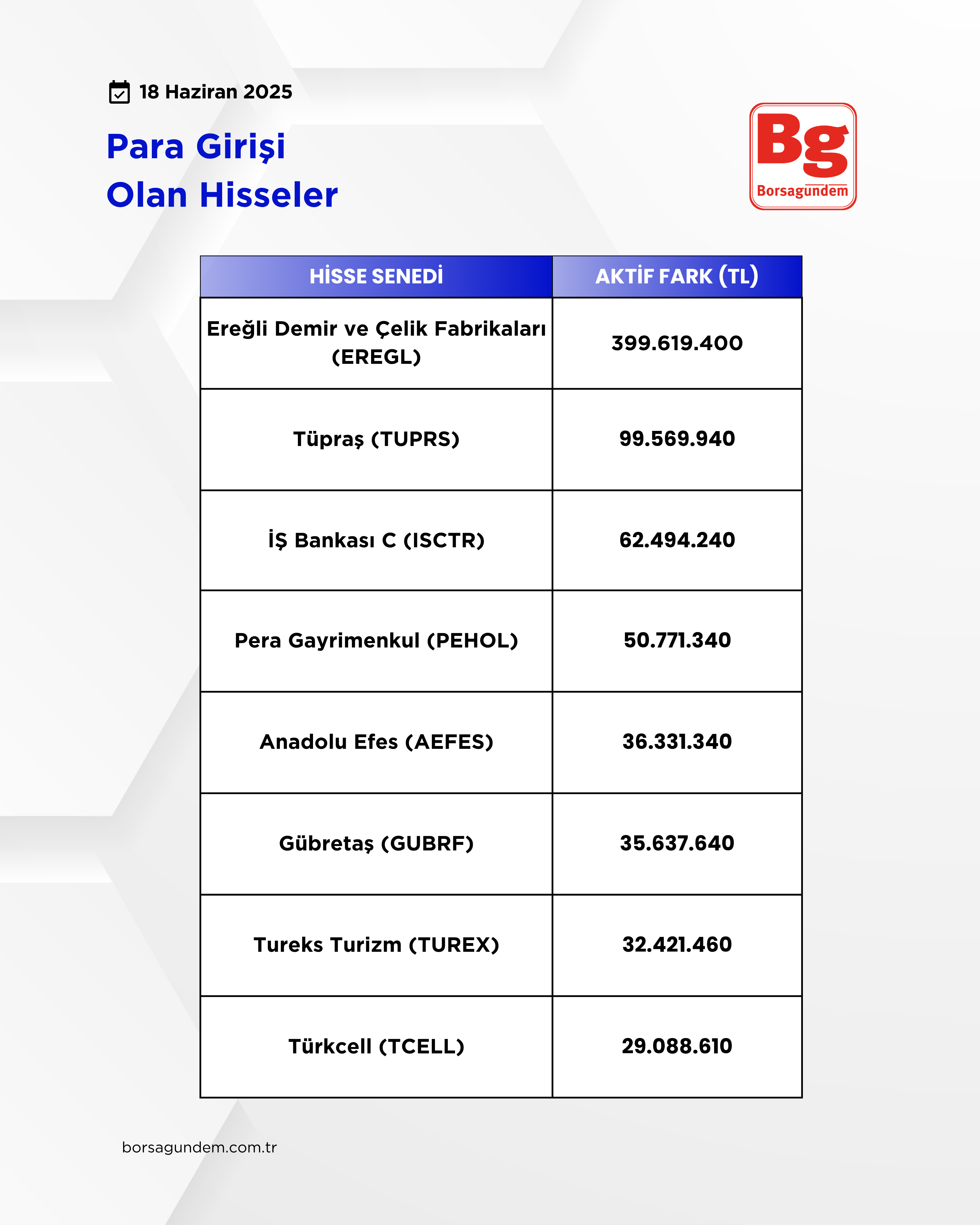 Para girişi olan hisseler