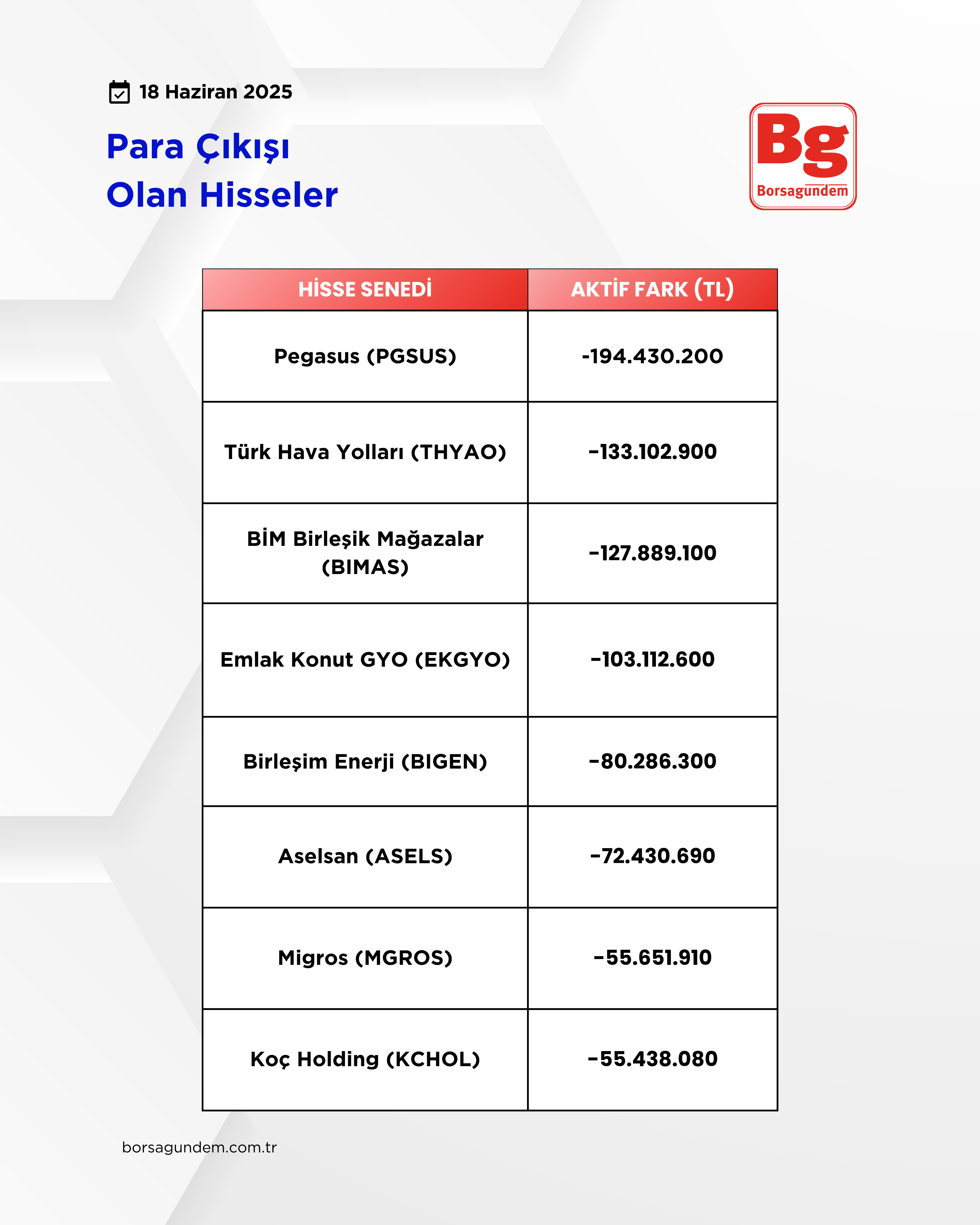 Para çıkışı olan hisseler