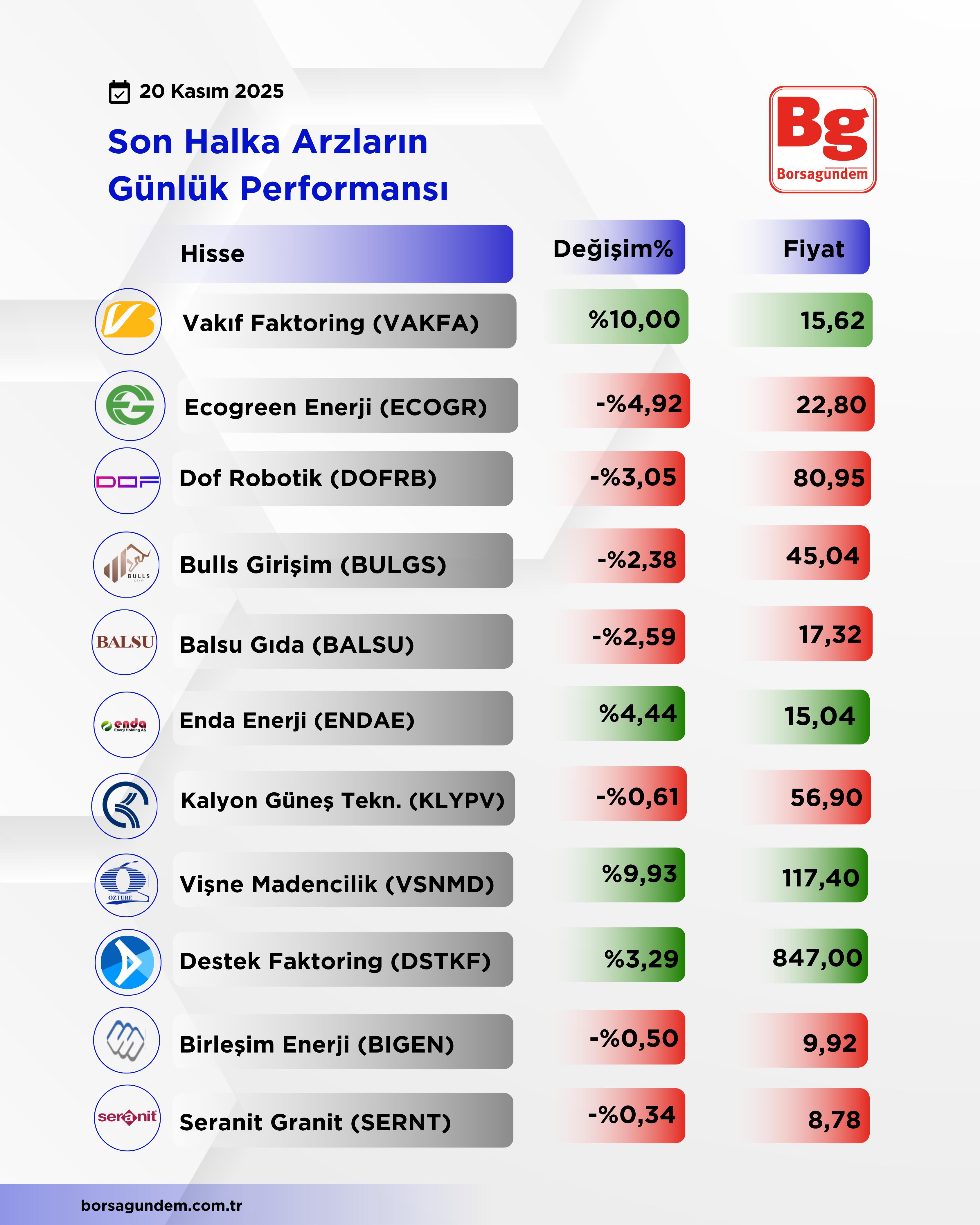 Borsa İstanbul'da halka arz edilen son hisselerin günlük performansı
