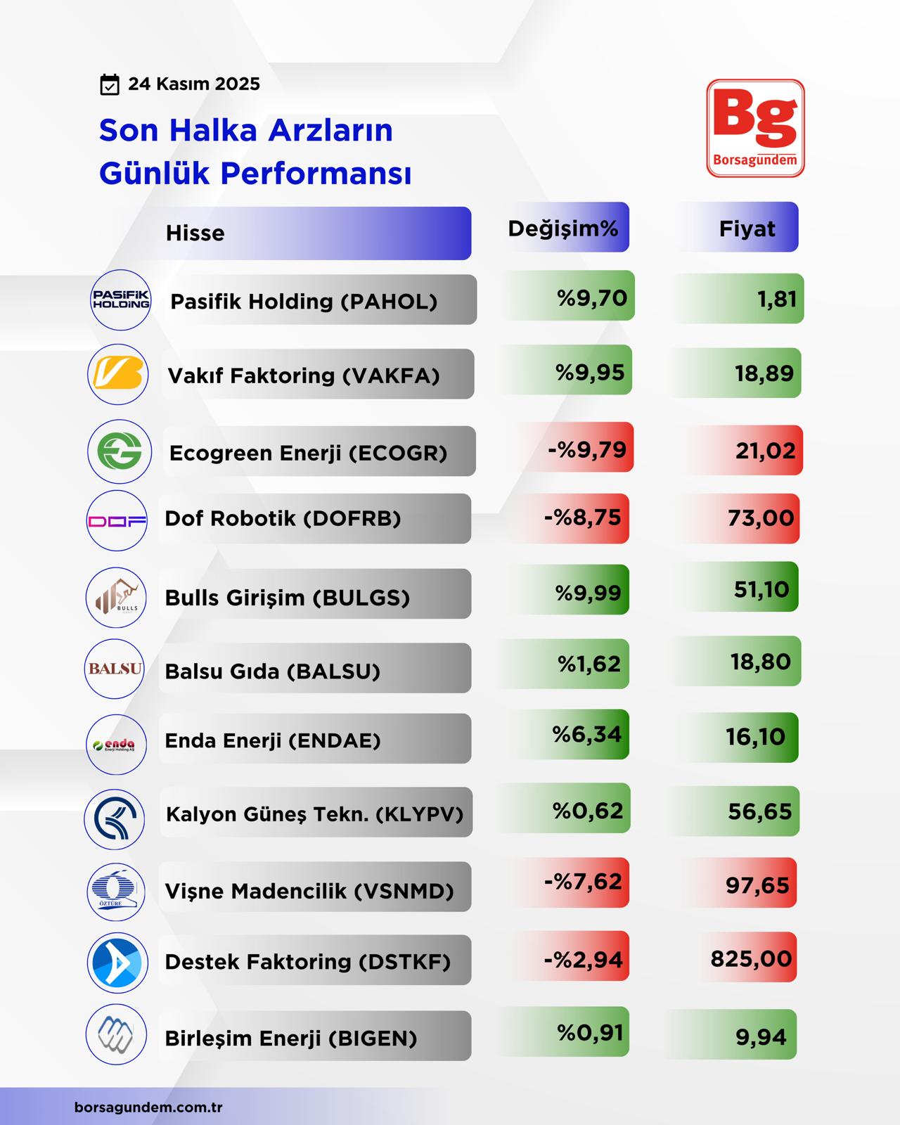 Borsa İstanbul'da halka arz edilen son hisselerin günlük performansı...