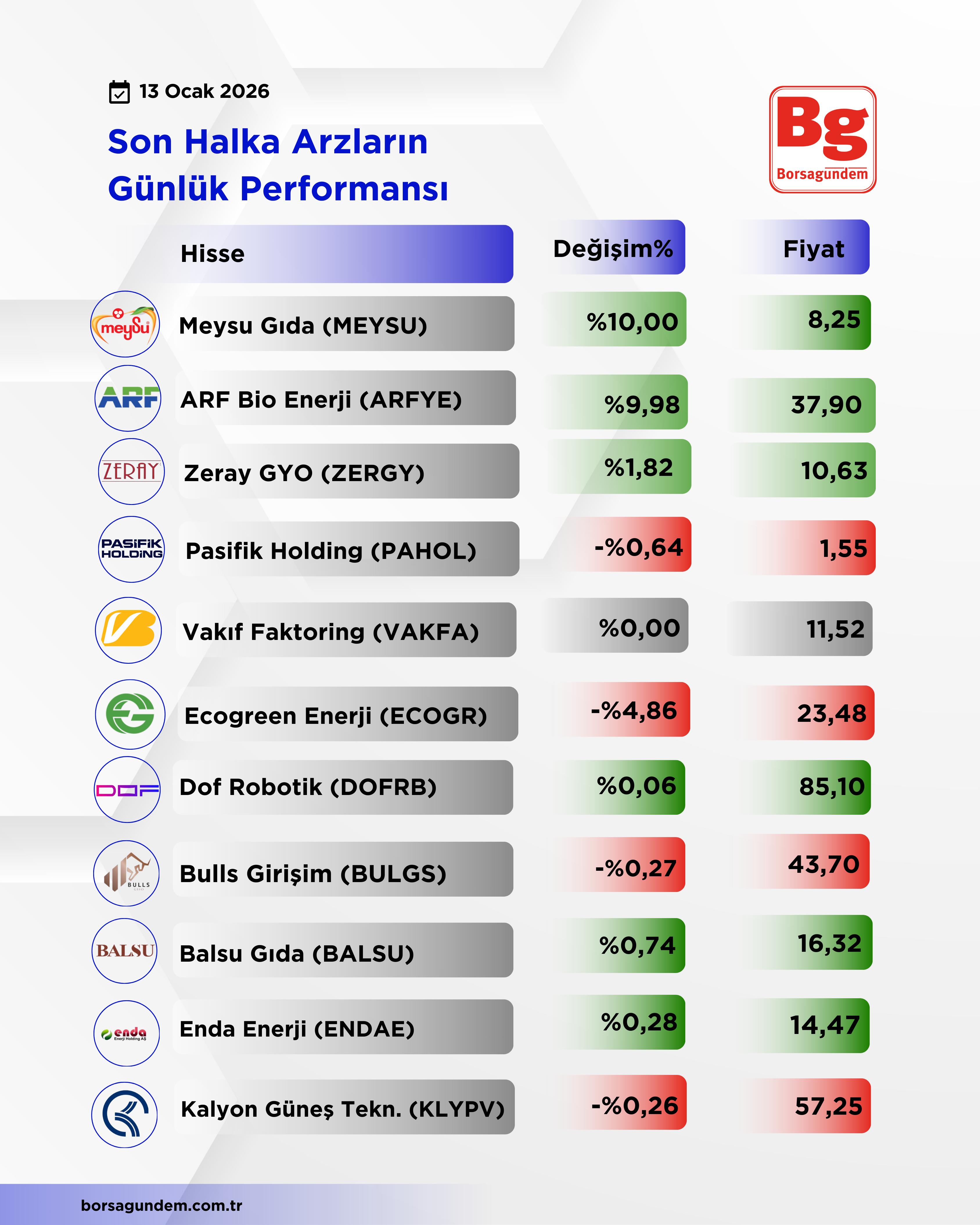 Borsa İstanbul'da işlem gören son halka arz hisselerinin günlük kapanış verileri...