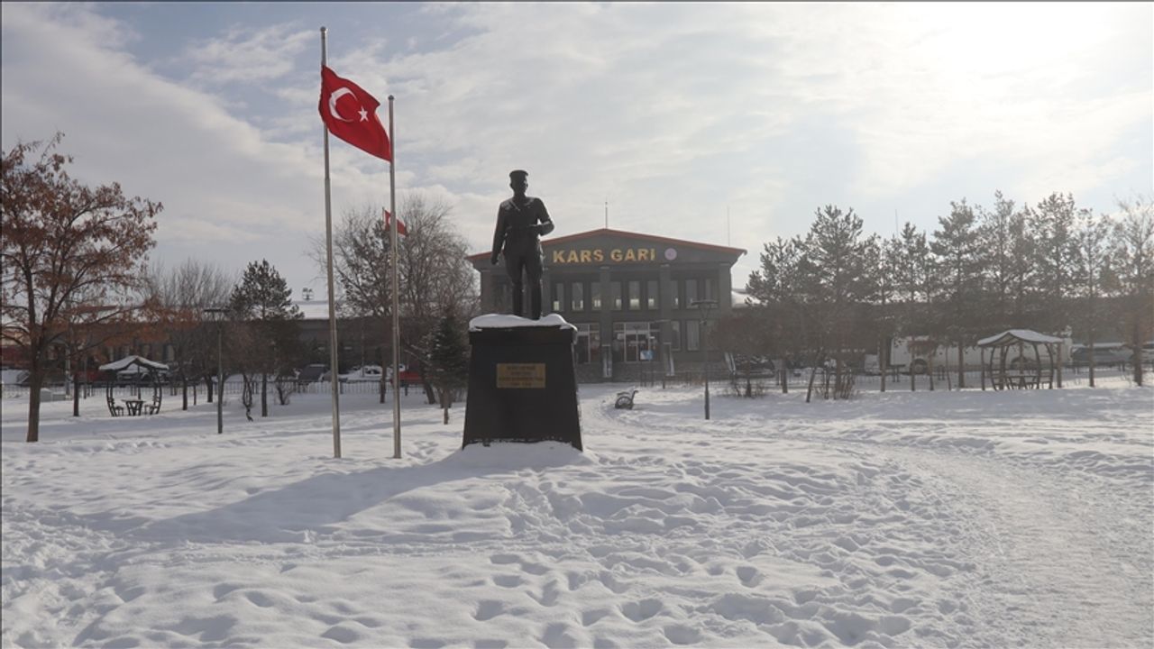 Kars'ta yağışın ardından bazı araçlar kara gömüldü, çatılarda buz sarkıtları oluştu.
