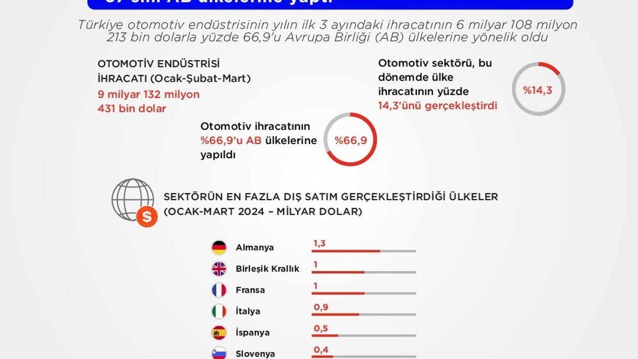 Türkiye ilk çeyrekteki otomotiv ihracatının yüzde 67’sini AB ülkelerine yaptı