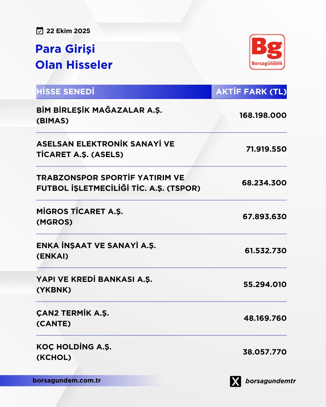 Para girişi olan hisseler