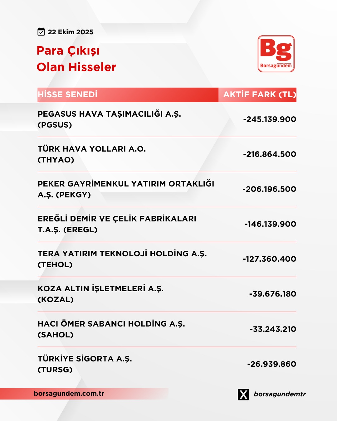 Para çıkışı olan hisseler