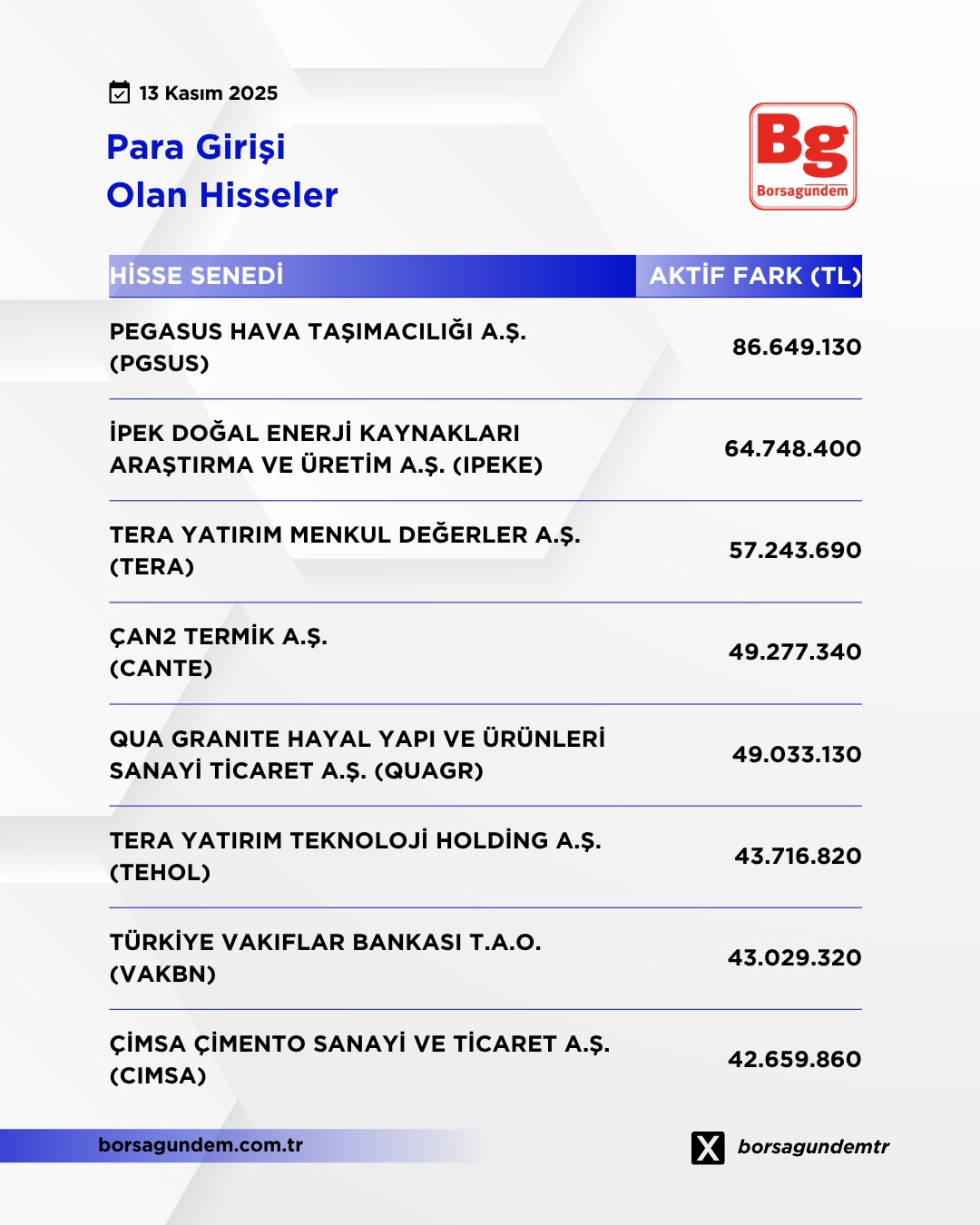 Para girişi olan hisseler